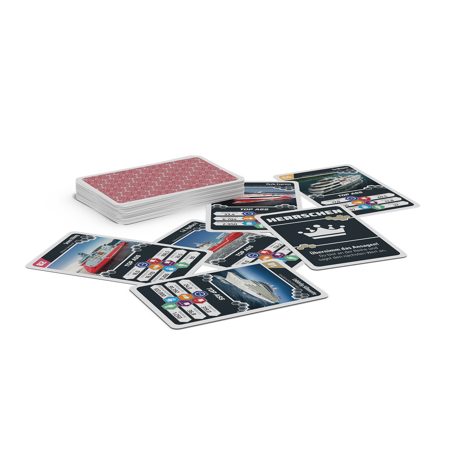 In diesem TOP ASS rund um die Ozeangiganten und Technikherrscher der Meere heißt es: Trumpfen, Sammeln, Siegen! Quartett & Trumpf: zwei Klassiker, ein Spiel! Drei Jokerkarten für mehr Spannung enthalten!
