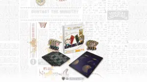 Harry und Malfoy stehen sich im Duell gegenüber und müssen versuchen, sich von der Duell-Bühne zu stoßen. Beide Charaktere sind als tolle Bastel-Figuren enthalten und werden als Spielfiguren eingesetzt. Die Spieler schlüpfen in die Rolle von Harry und Malfoy und treten gegeneinander an. Beide Spieler ziehen eine Zauberspruch-Karte und führen den Zauberspruch aus. Der stärkere Zauberspruch schickt den Gegener im Duell zurück. Gewinner ist, wer mit etwas Taktik und einer Prise Glück seinen Gegner aus dem Duell drängt.